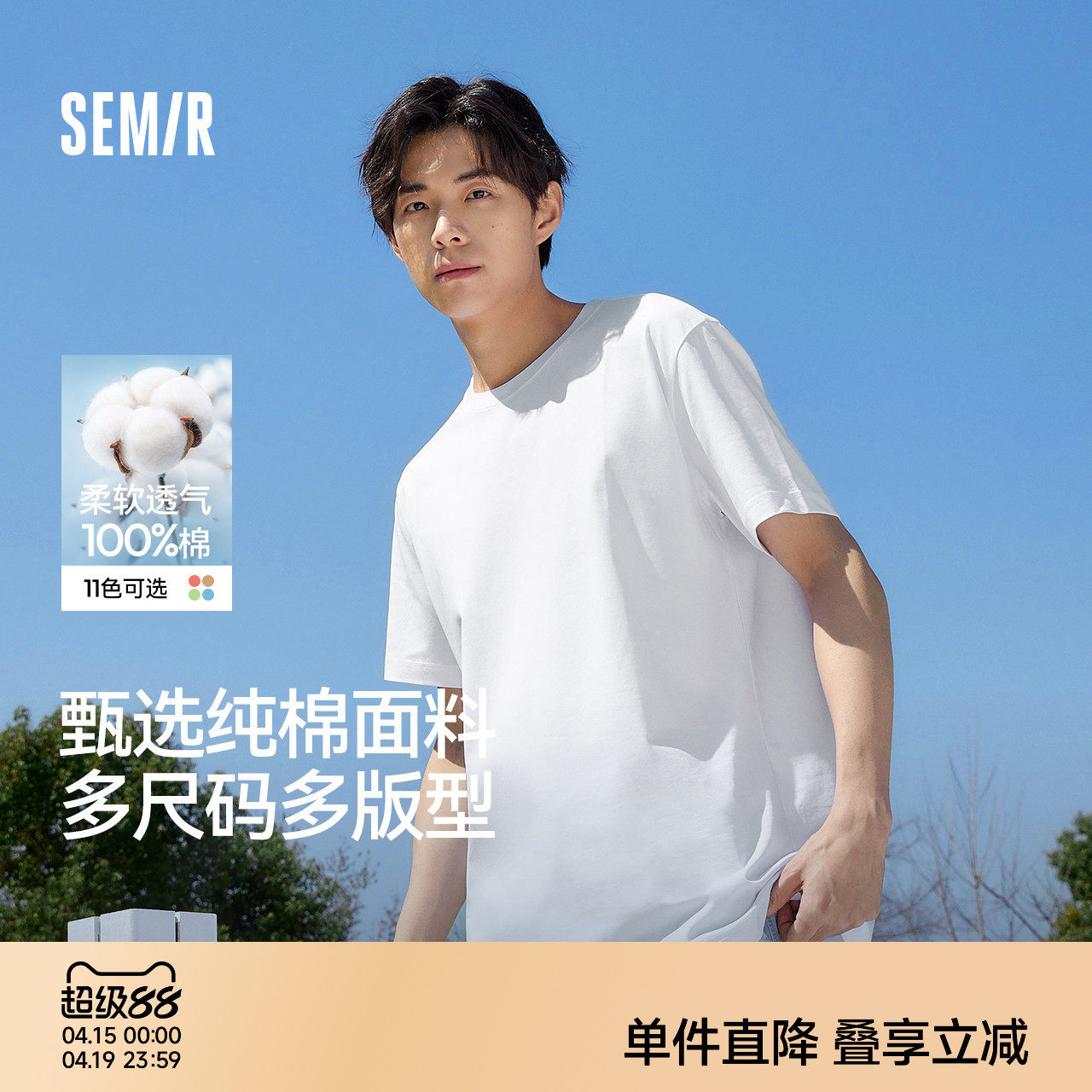 森马短袖T恤男装新款纯棉半袖情侣纯白圆领凉感白t休闲打底衫贴身
