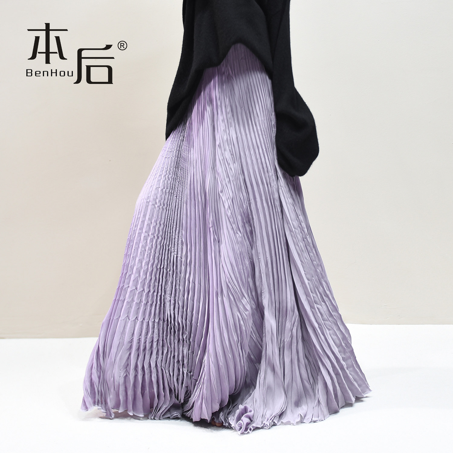 读衣术香芋紫百褶裙 雪纺垂坠感高端半身裙 雪纺长裙到脚踝百叶裙