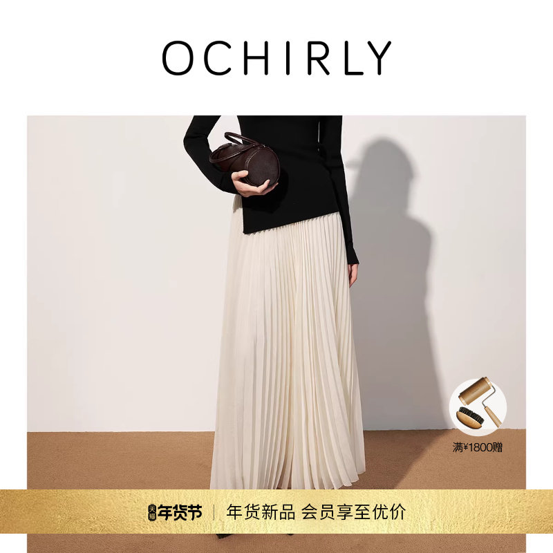 【新品】OCHIRLY欧时力 雪纺百褶半身裙长裙a字裙大摆气质25秋冬