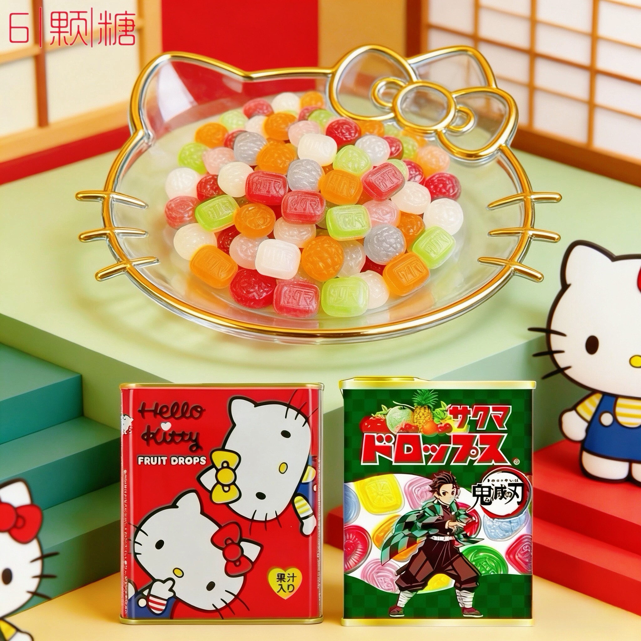 日本进口零食佐久间罐仔糖果汁小硬糖KT猫鬼灭之刃铁盒什锦水果糖