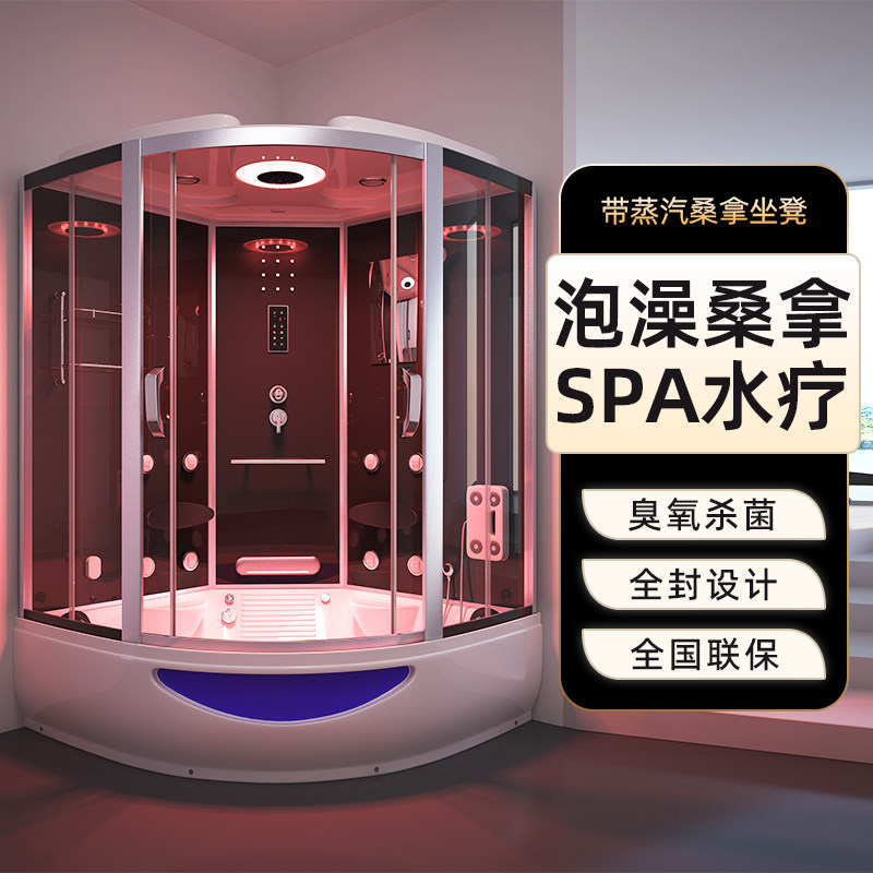 直销新款?整体淋浴房带冲浪洗澡间一体式浴室桑拿房泡澡带浴缸干