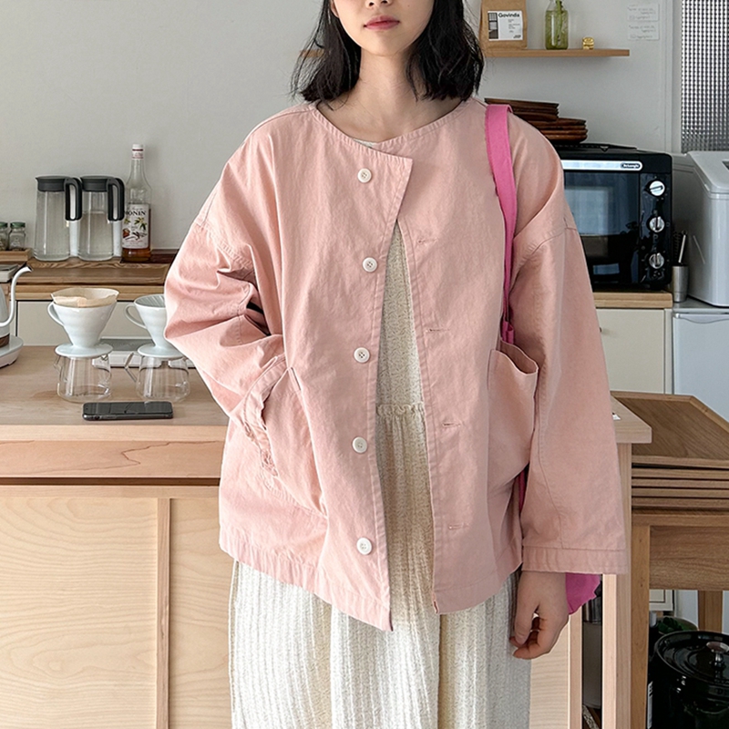 韩国女装新简约宽松拉链立领插肩长袖春夏女风衣外套防晒挡风保暖
