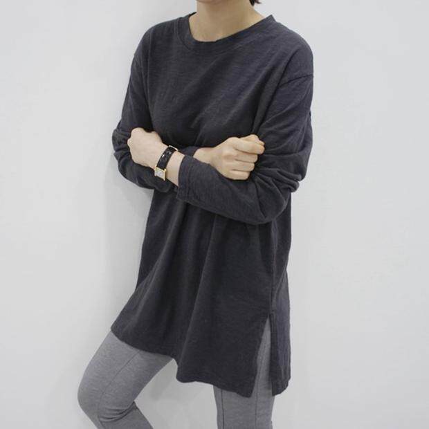好品质韩国竹节纯棉不透不起球中长款长袖春秋女白色t恤打底宽松