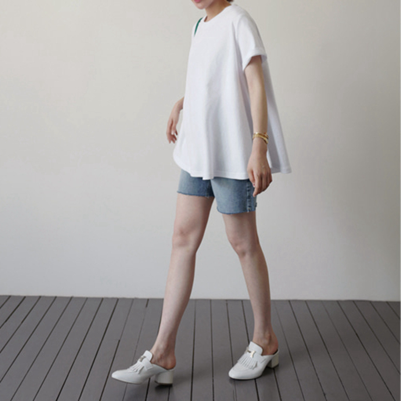 T310好品质韩国女装简约宽松棉毛圈卫衣落肩慵懒箱型t恤夏显瘦