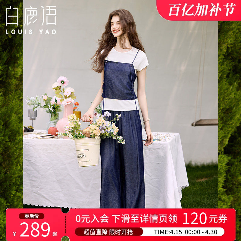 白鹿语设计感气质三件套25夏新款时尚显瘦百搭圆领吊带长裤女套装