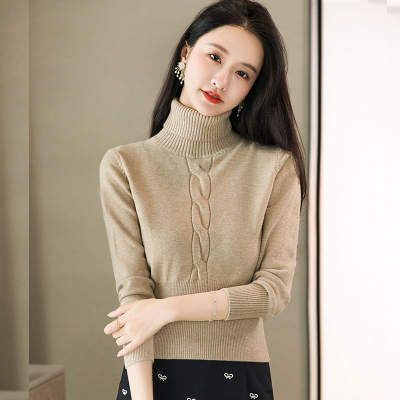 - 高领紧身毛衣女套头