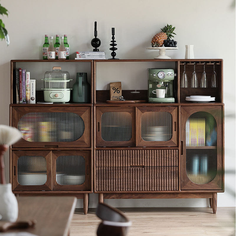 全实木餐边柜北欧风格现代简约茶水柜黑胡桃木组合家用多功能边柜