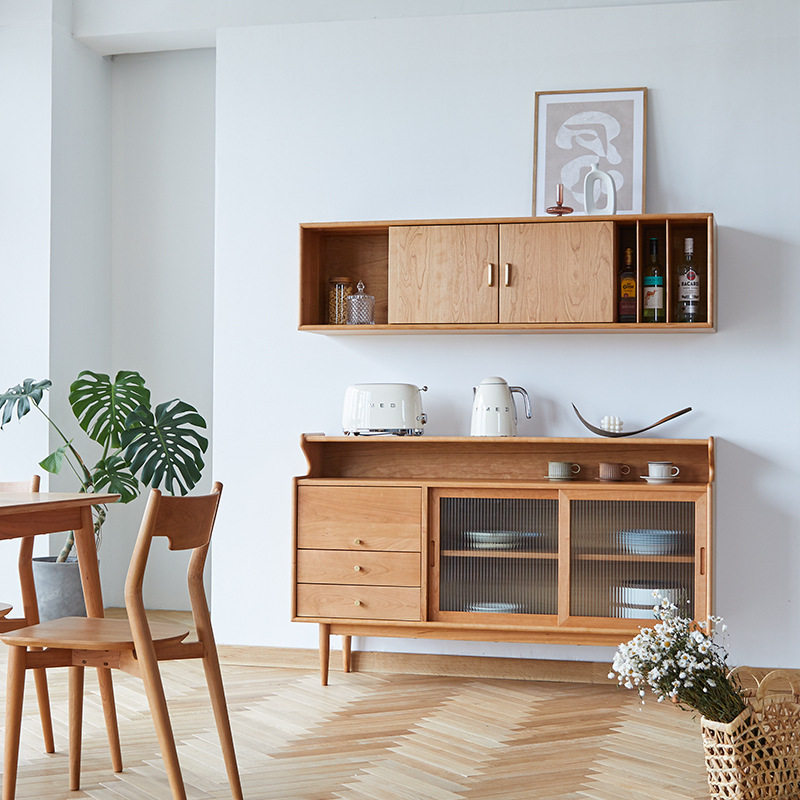 纯实木北欧风格餐边柜简约现代茶水柜小户型落地柜红橡木家用柜子