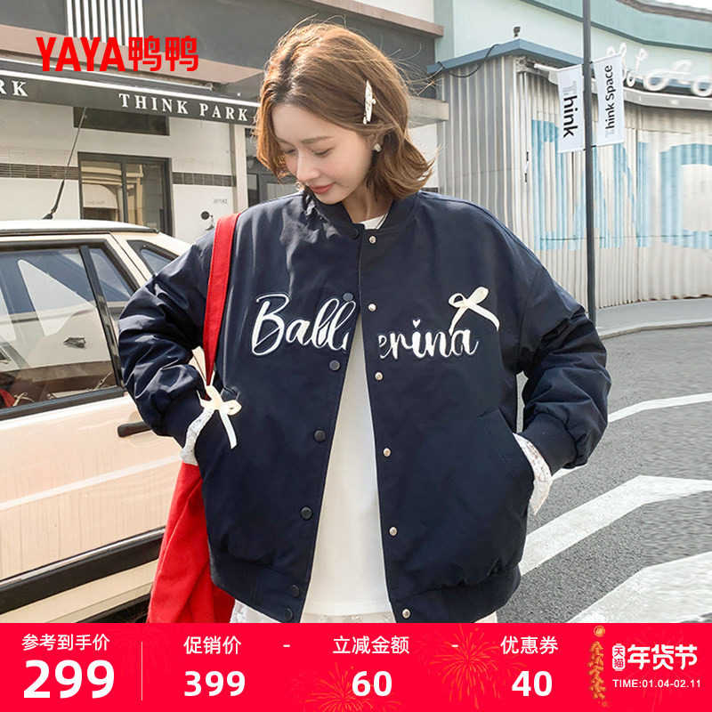 鸭鸭轻薄羽绒服女2025年秋冬反季时尚休闲百搭棒球领学院风外套J