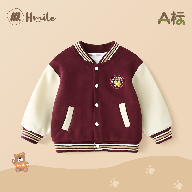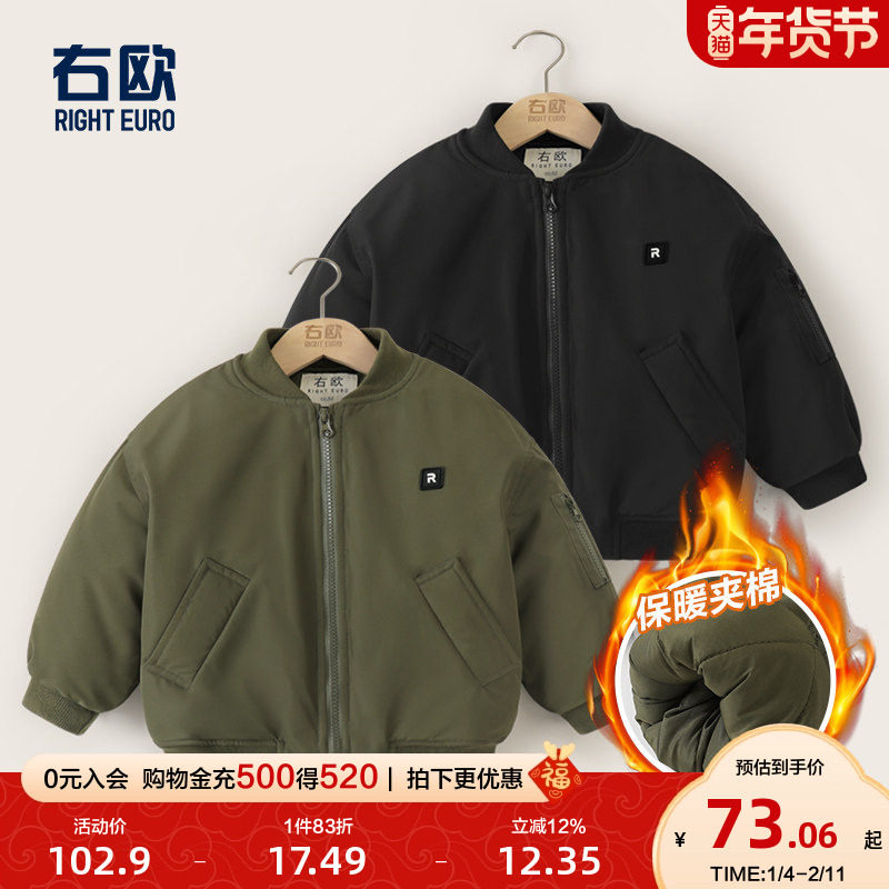 右欧儿童绒里棒球服外套纯色男童女童轻薄棉服洋气秋冬季新款童装