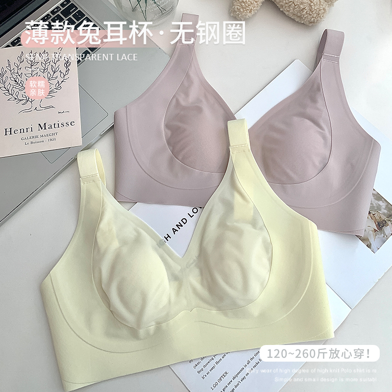 ALIN大码家居200斤胖mm兔耳杯内衣薄款女大胸显小无钢圈无痕文胸