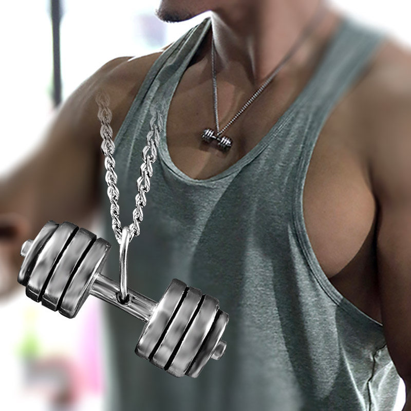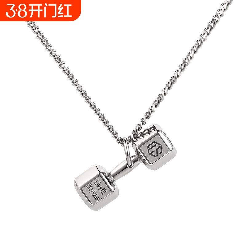 哑铃项链男士钛钢挂饰肌肉男挂件健身吊坠配饰运动锁骨链挂坠饰品