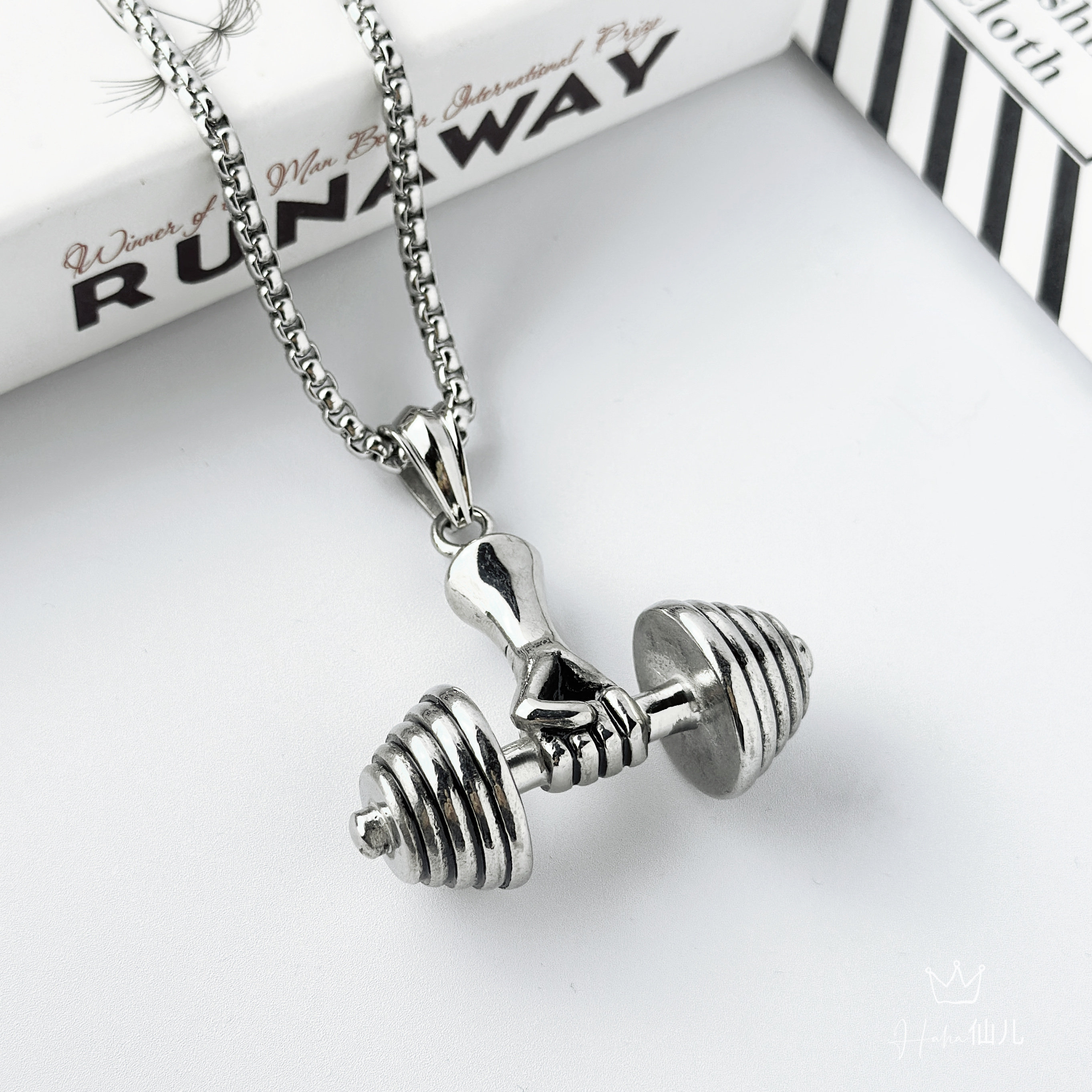 Dumbbell necklace 潮嘻哈健身运动钛钢哑铃吊坠项链男hiphop欧美
