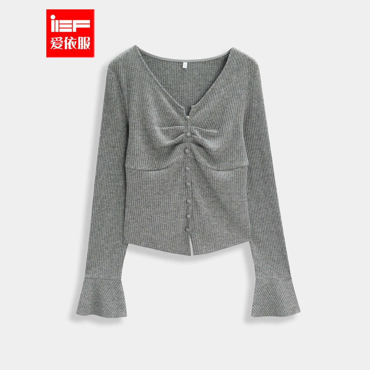 IEF/爱依服2025秋季新款韩版性感小女人气质通勤百搭喇叭袖上衣