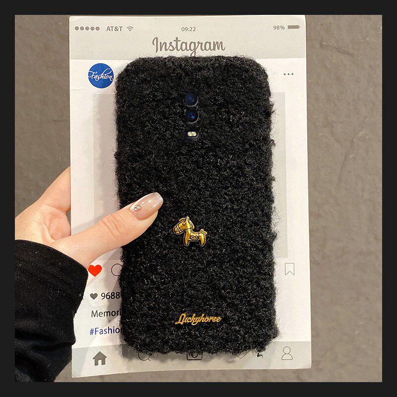 2026毛绒小马适用oppor17手机壳r15x新年r11splus卡通r11s立体r9带r9plus挂绳r7s秋冬r17pro毛茸茸oppo马年女