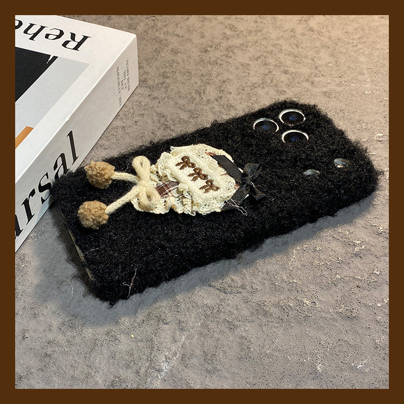 ins风蕾丝蝴蝶结适用oppor17手机壳r15x秋冬r11splus毛绒r11s带r9挂绳r9plus立体r7s毛茸茸r17pro冬天oppo女p