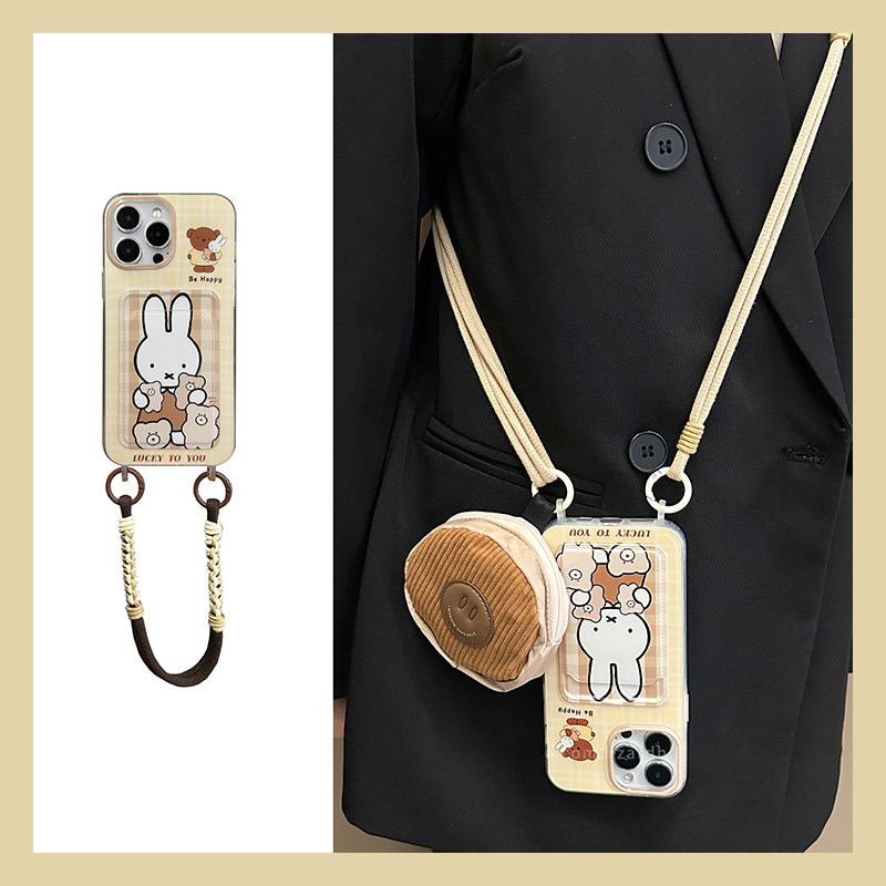 适用oppor17pro手机壳k1可斜挎r15卡通r11s米菲兔r9卡包r9s带r7plus挂绳r7s钱包r15梦境版r15x卡套oppo插卡女