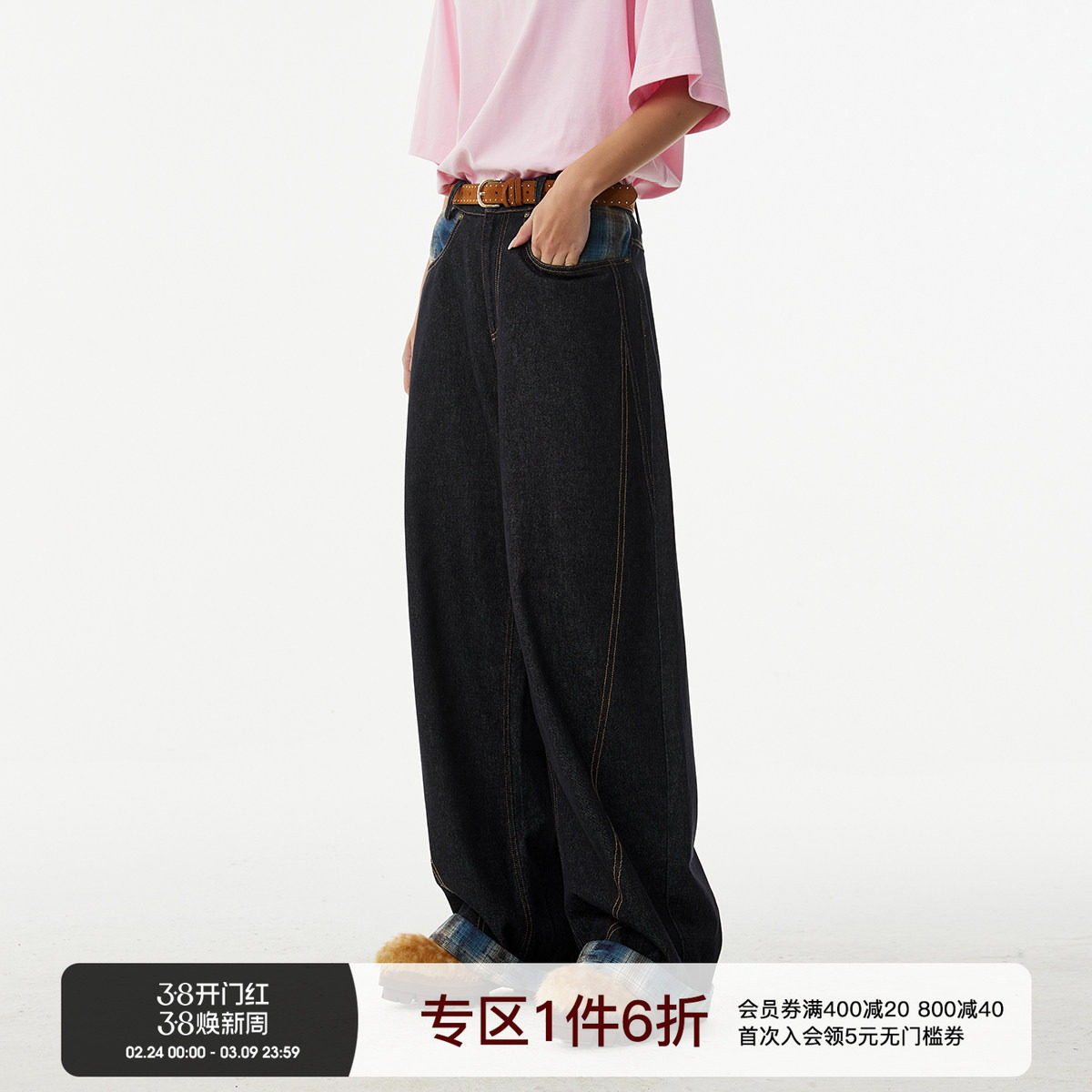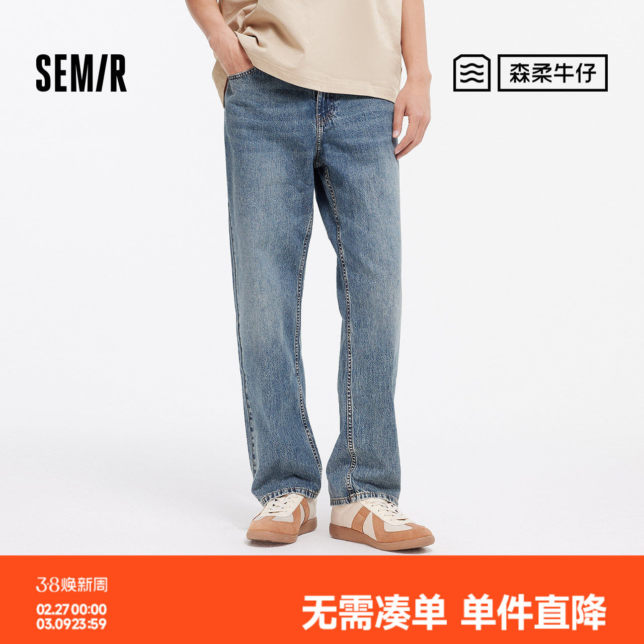 森柔牛仔|森马牛仔裤男宽松直筒拖地裤垂感复古长裤夏季裤子显高
