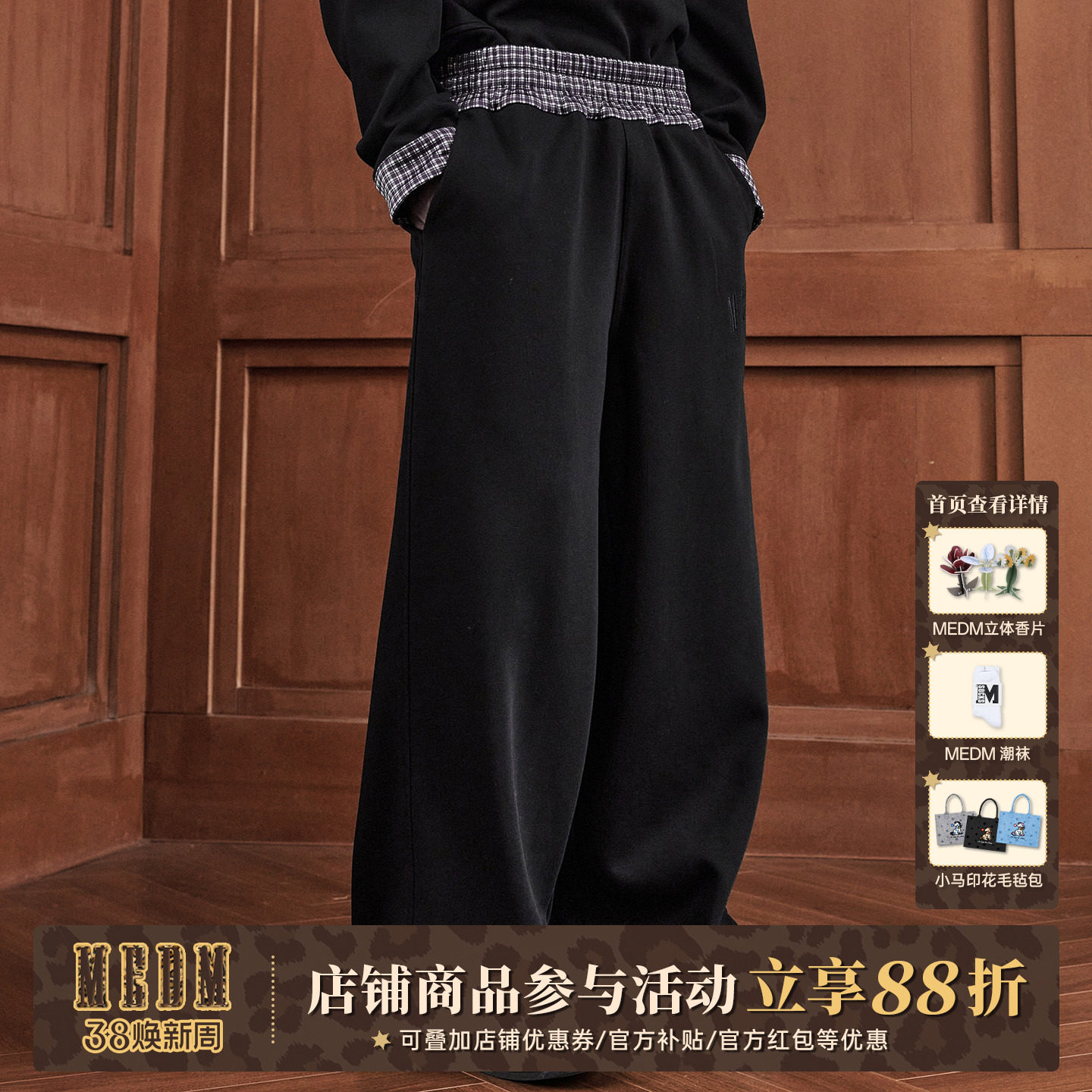 MEDM 基础双面拼格子休闲裤美式简约百搭通勤男女宽松拖地裤春秋