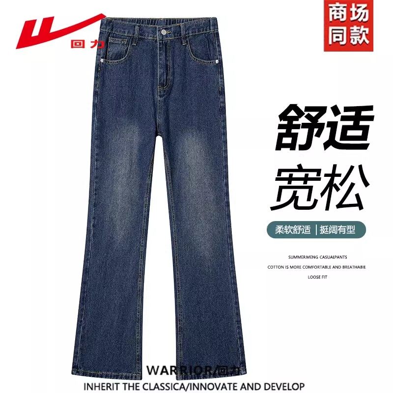 回力微喇牛仔裤男女款春秋季新款复古水洗拖地裤宽松直筒百搭长裤
