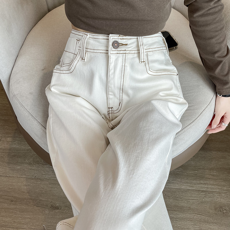 白色阔腿牛仔裤女秋季新款高腰宽松休闲显瘦百搭小个子直筒拖地裤