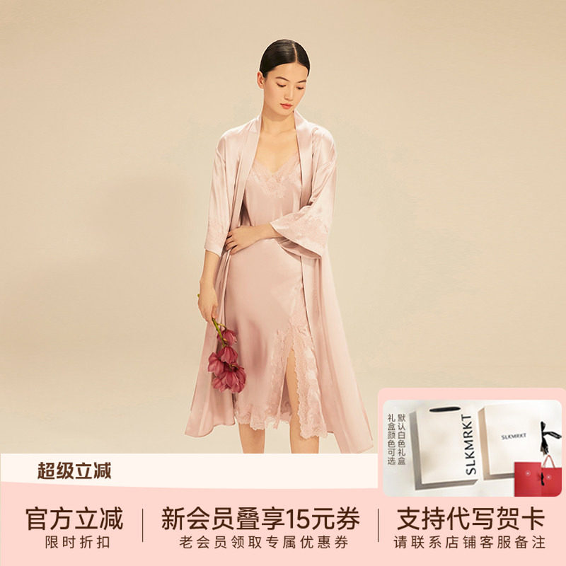SLKMRKT乃丝春秋真丝蕾丝性感吊带睡裙女居家桑蚕丝睡袍睡衣套装