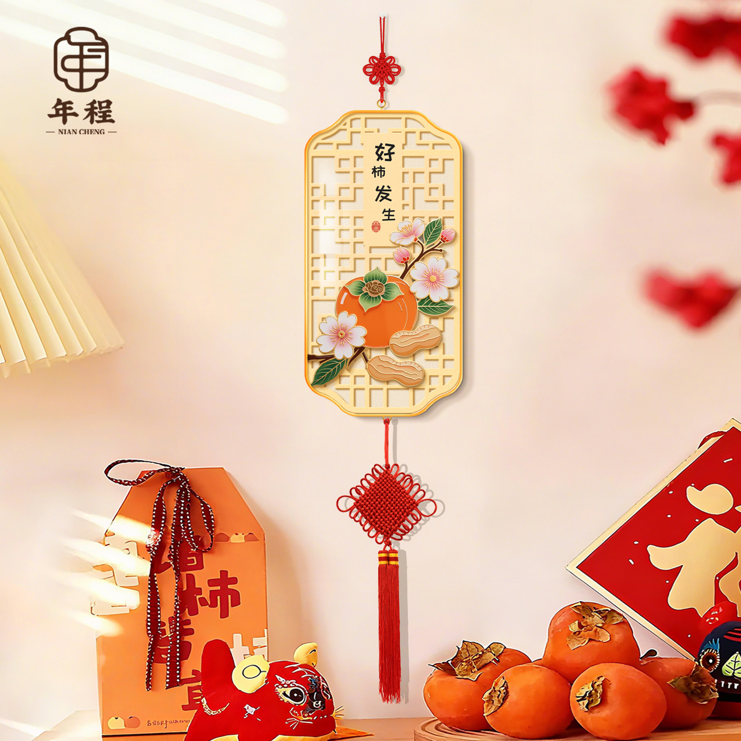 新中式好柿连连客厅挂饰好寓意玄关电视背景墙面装饰挂件乔迁礼物