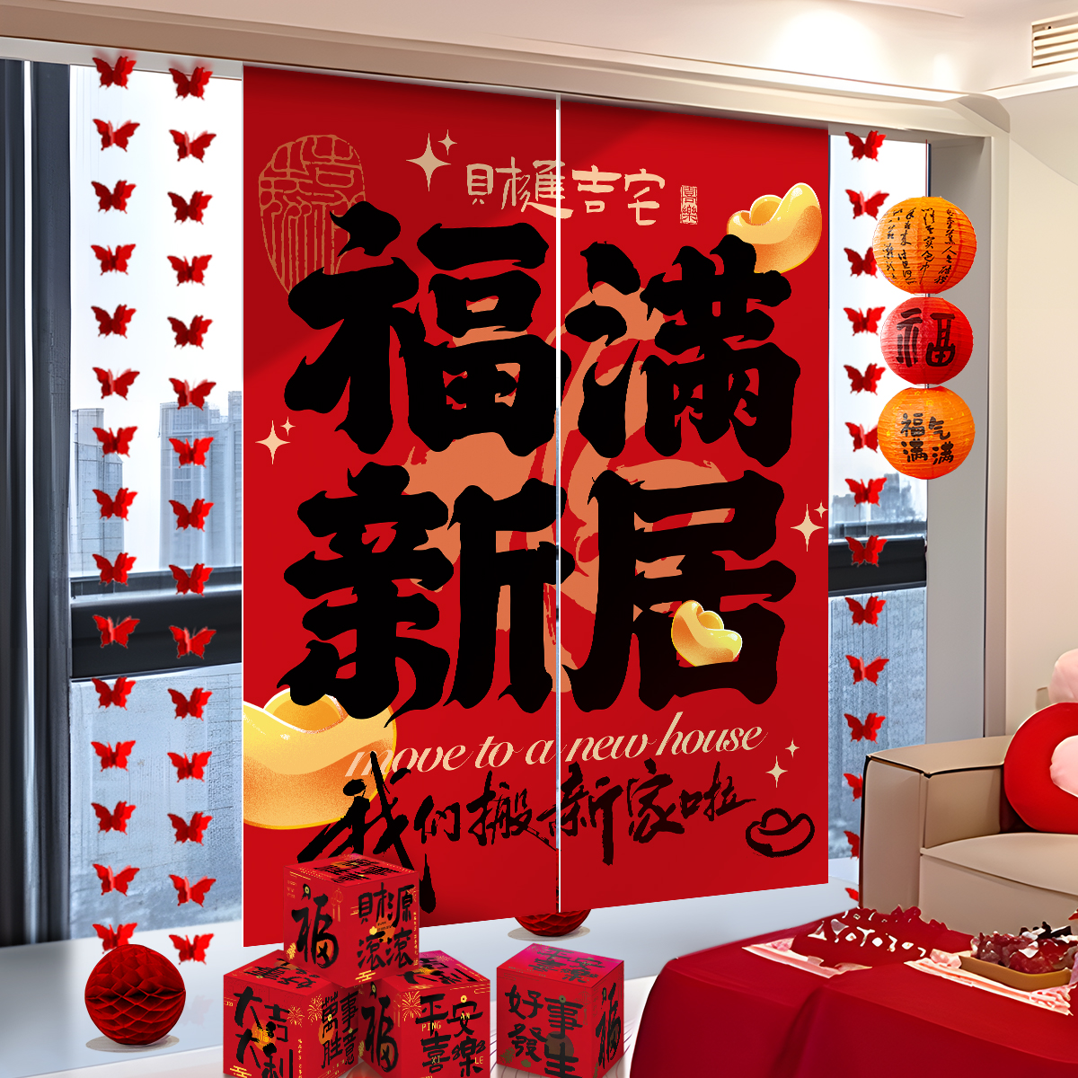 乔迁之喜装饰新居布置客厅挂饰阳台拉花挂布搬家礼物入宅仪式用品