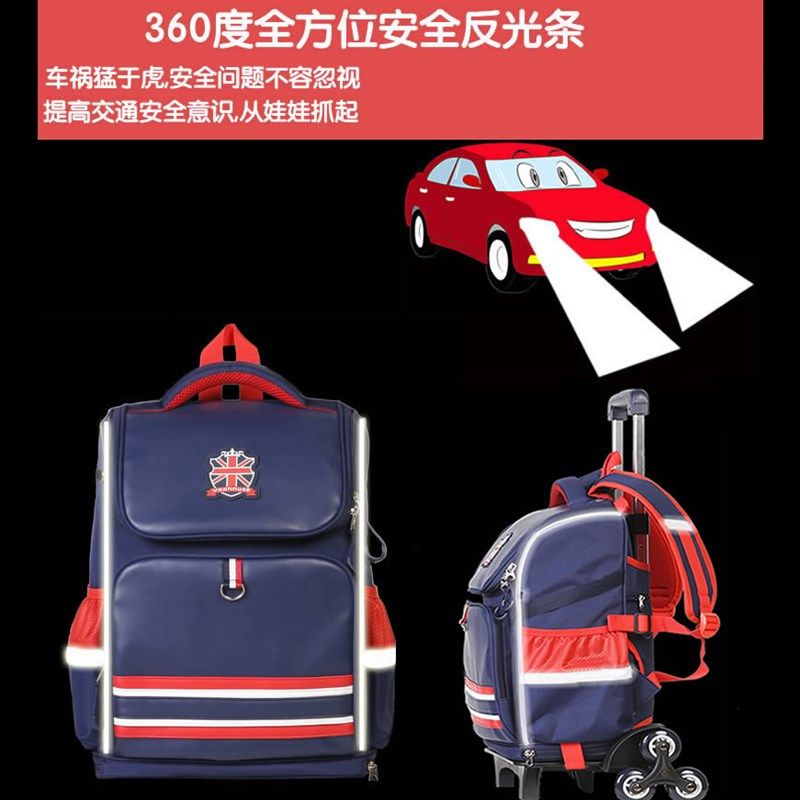 儿童六轮拉杆书包小学生男带有轮子的女孩1-3-5年T级防水拖箱爬楼