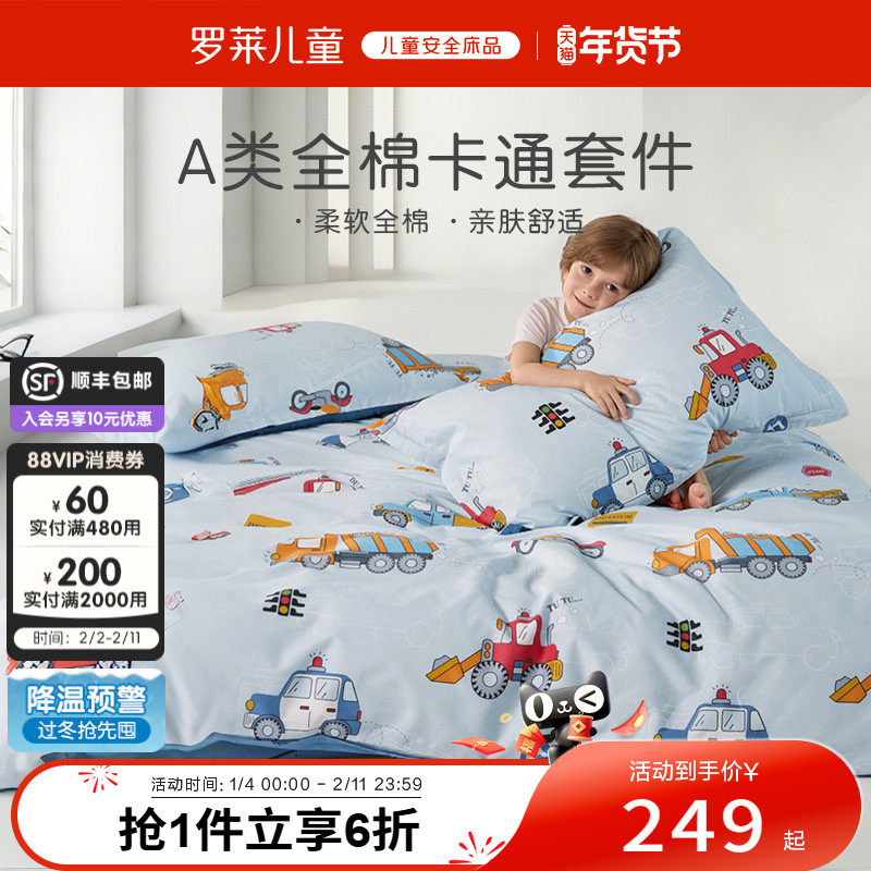 罗莱家纺儿童床上用品全棉60支纯棉三件套被套被罩床笠床单四件套