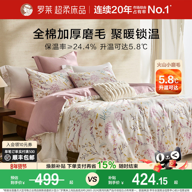 罗莱家纺旗舰店秋冬床上用品磨毛纯棉加厚床单被套全棉被罩四件套