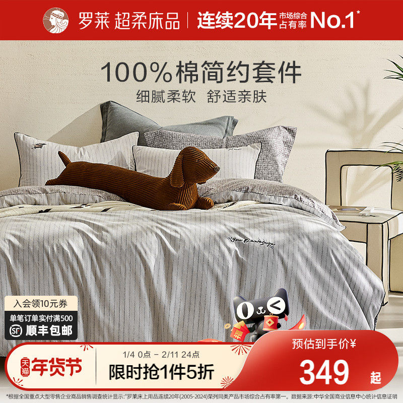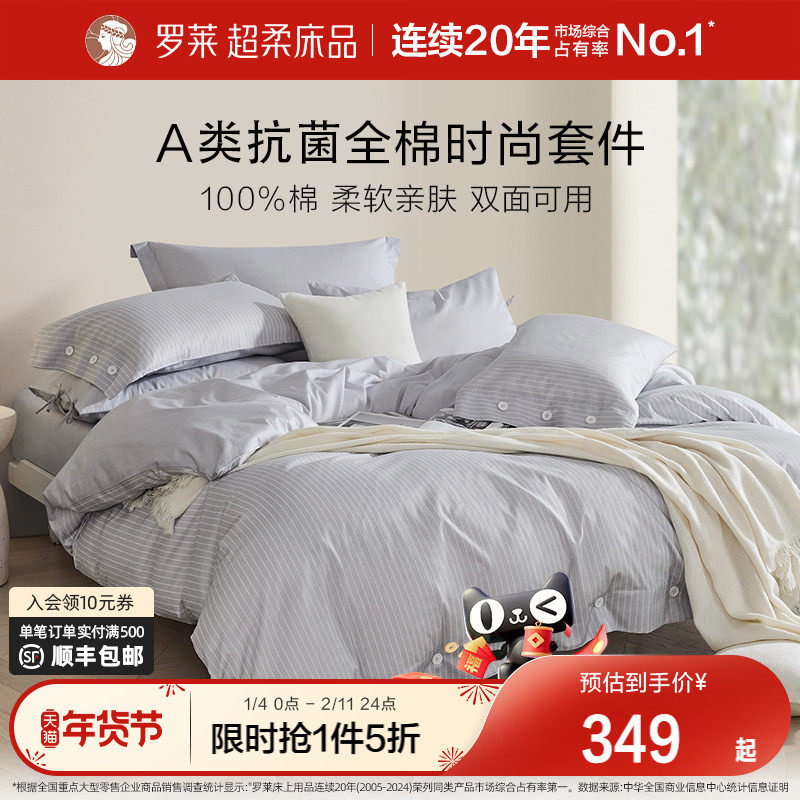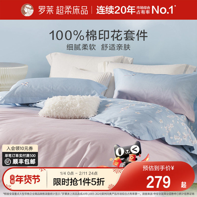 罗莱家纺官方旗舰店床上用品全棉纯棉纯棉套件床单被套被罩四件套