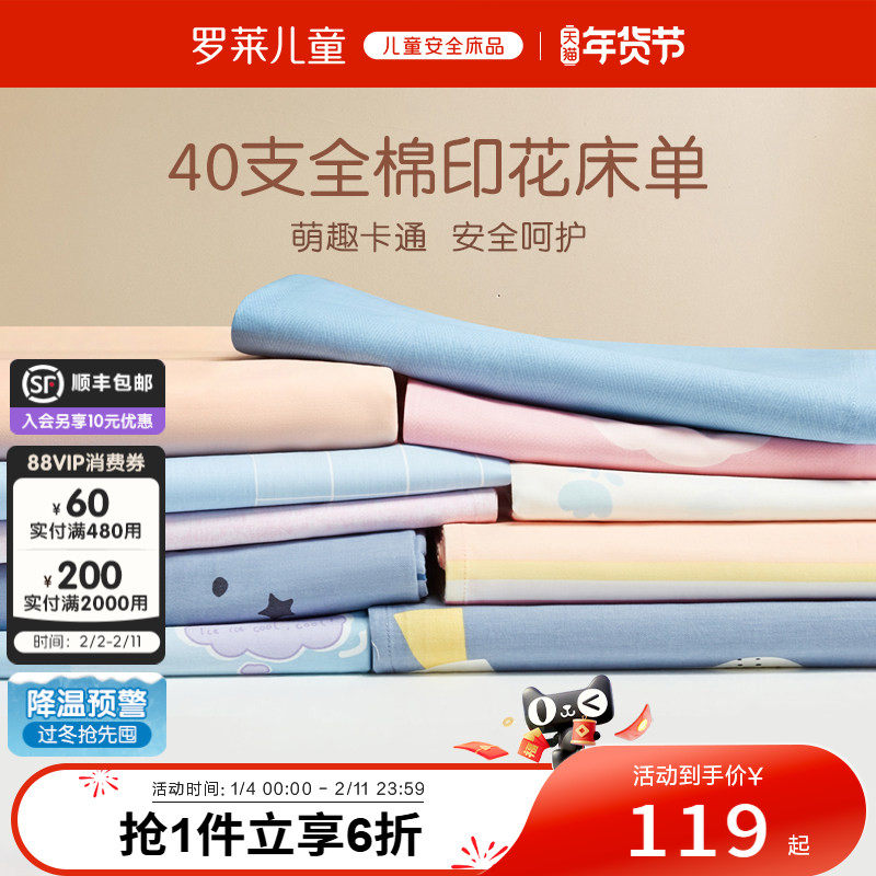 罗莱儿童家纺床上用品全棉纯棉单人床男女孩学生宿舍卡通单卖床笠
