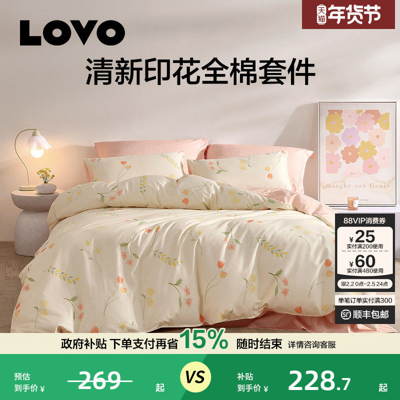 罗莱生活LOVO全棉纯棉四件套被套床单床上用品宿舍三件套小清新