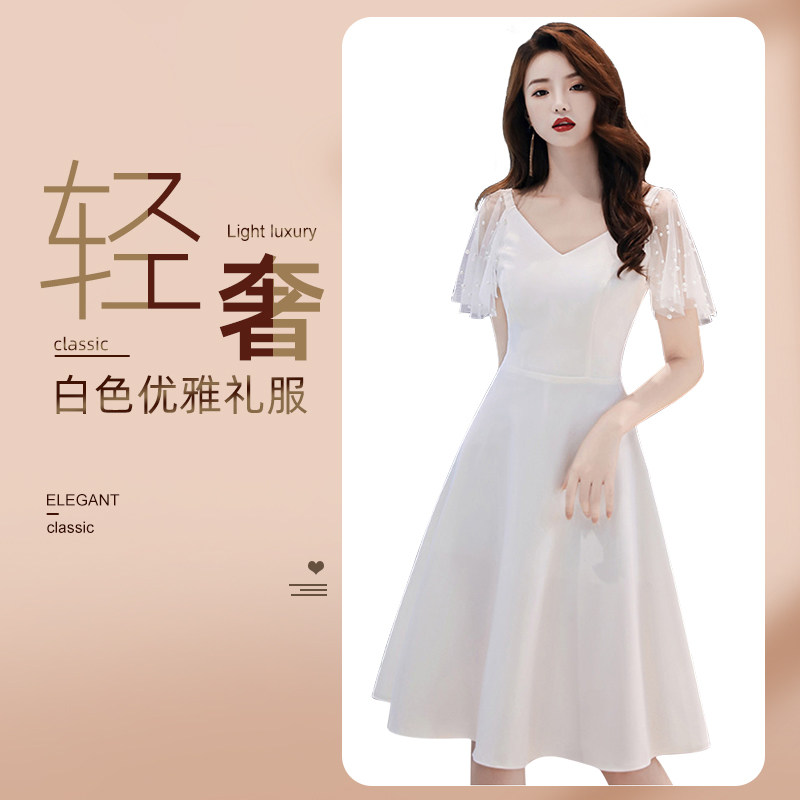 白色新娘优质晚2025年新款显瘦袖修身日常简约时尚短款仙女裙礼服