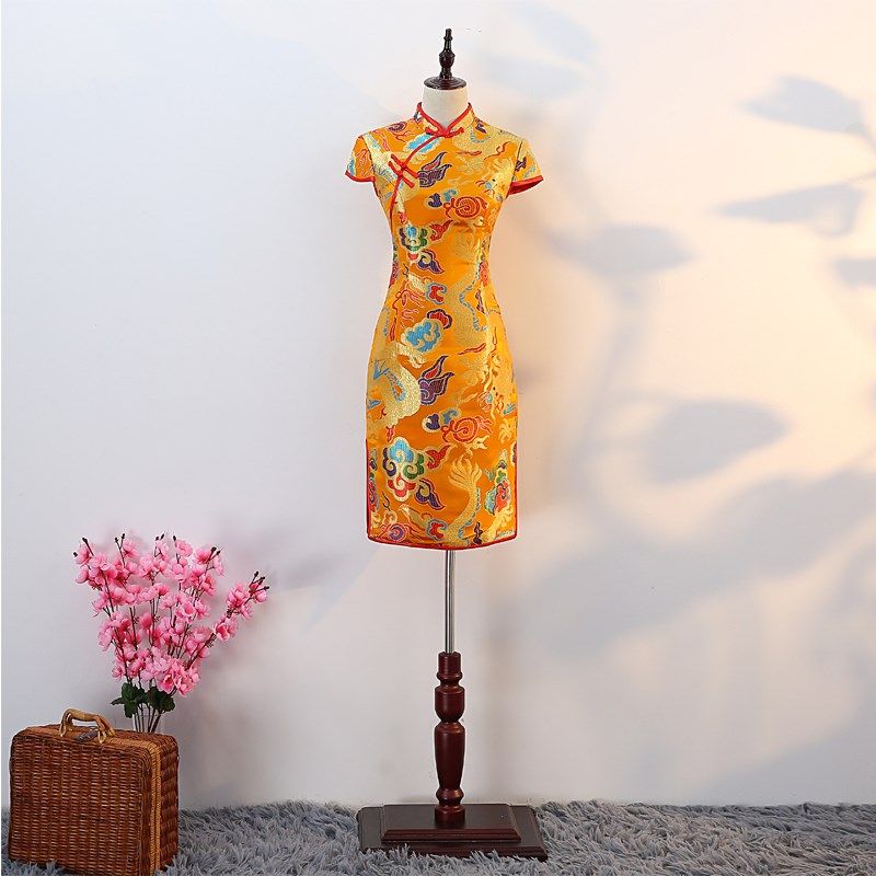 改良旗袍短款2025修身显瘦中式宴会晚礼服旗袍金色龙袍年会演出服