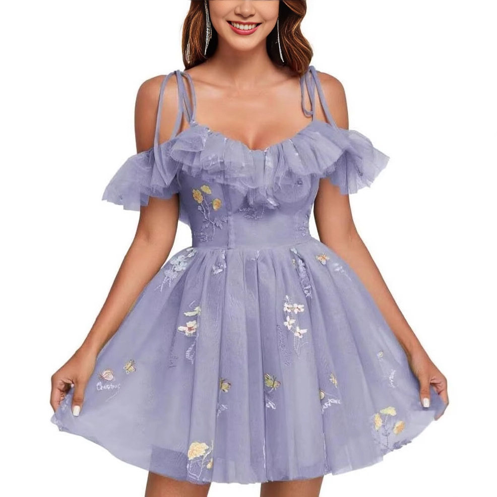亚马逊吊带晚礼服短款连衣裙2026新款网纱修身显瘦成人礼主持礼服