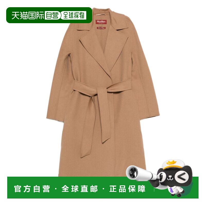 【自营】MaxMara女士FW25绵羊毛混纺系带翻领中长款纯色毛呢大衣
