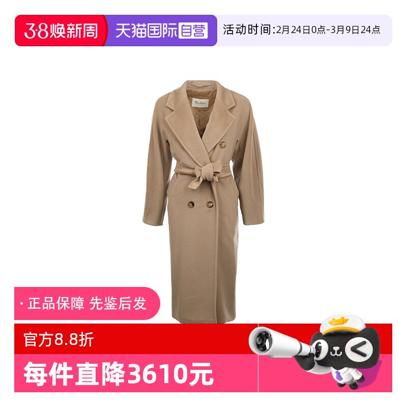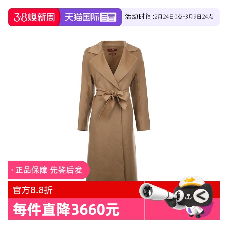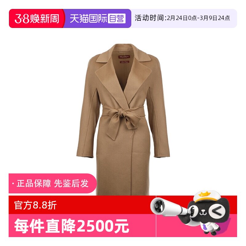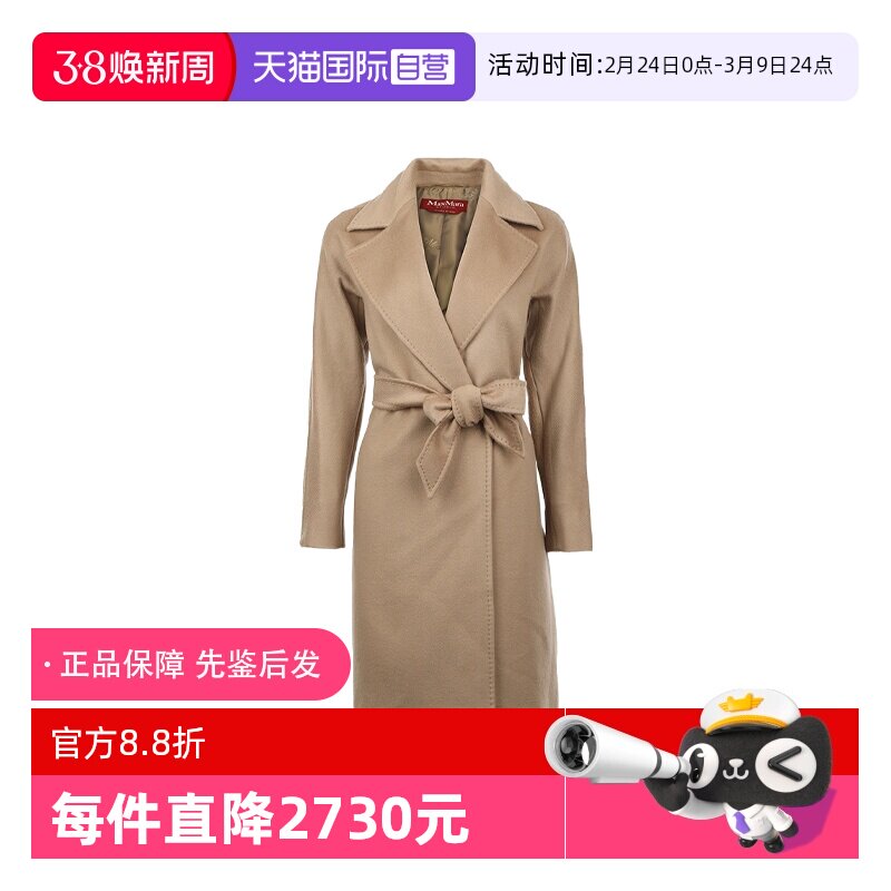 【自营】MaxMara女士25年秋冬绵羊毛混纺腰部系带中长款毛呢大衣