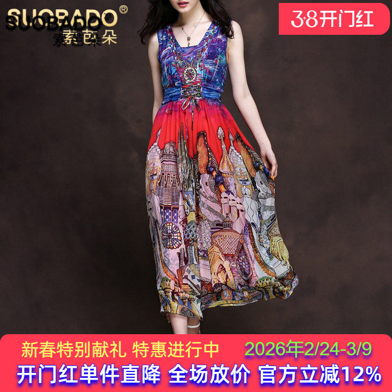 特价重工真丝连衣裙2026春夏无袖沙滩裙波西米亚大摆桑蚕丝长裙
