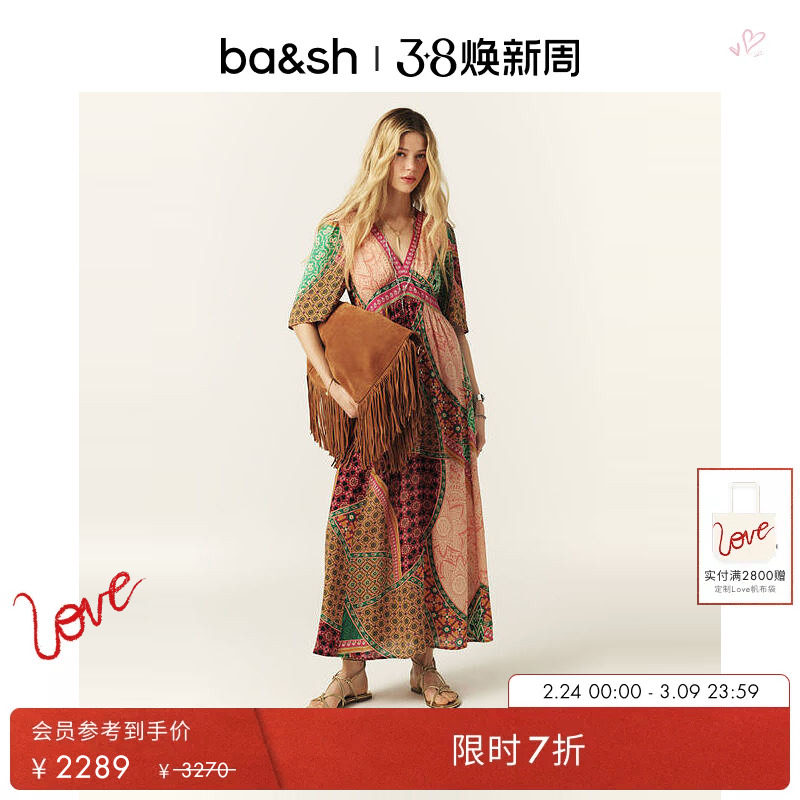 【限时7折】bash春季法式波西米亚风V领度假连衣裙长裙1E25VALL