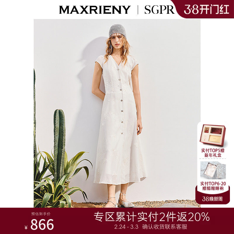 【2件8折】【SGPR】波嬉风小盖袖收腰连衣裙25夏波西米亚风长裙