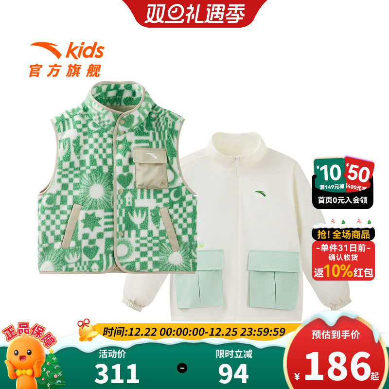 安踏儿童女大童两件套运动上衣2025春季新款保暖摇粒马甲女孩外套