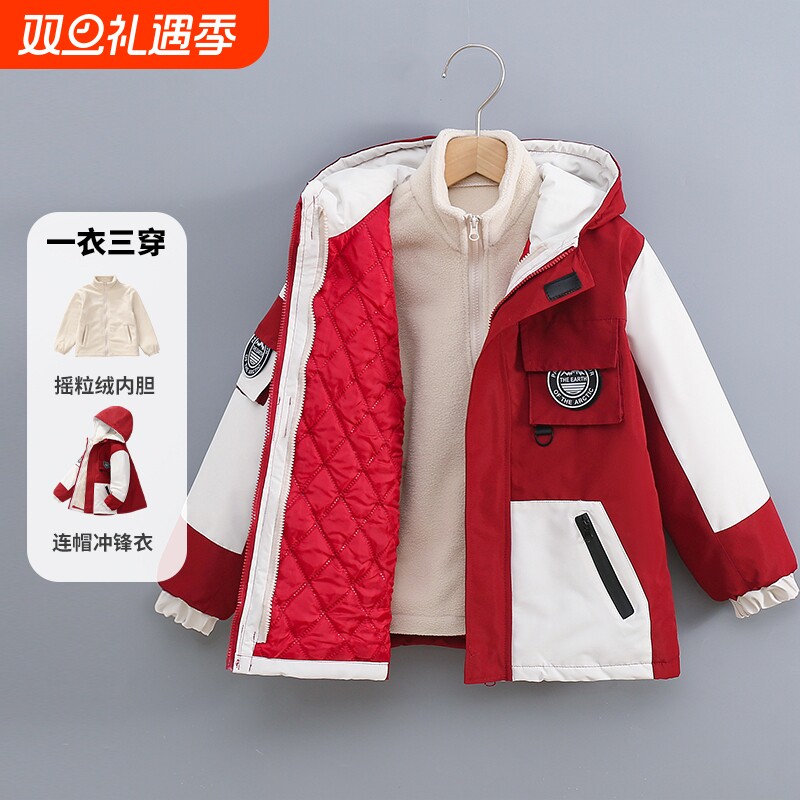 男童冲锋衣三合一可拆卸2025新款儿童夹棉中大童装女孩外套春秋冬