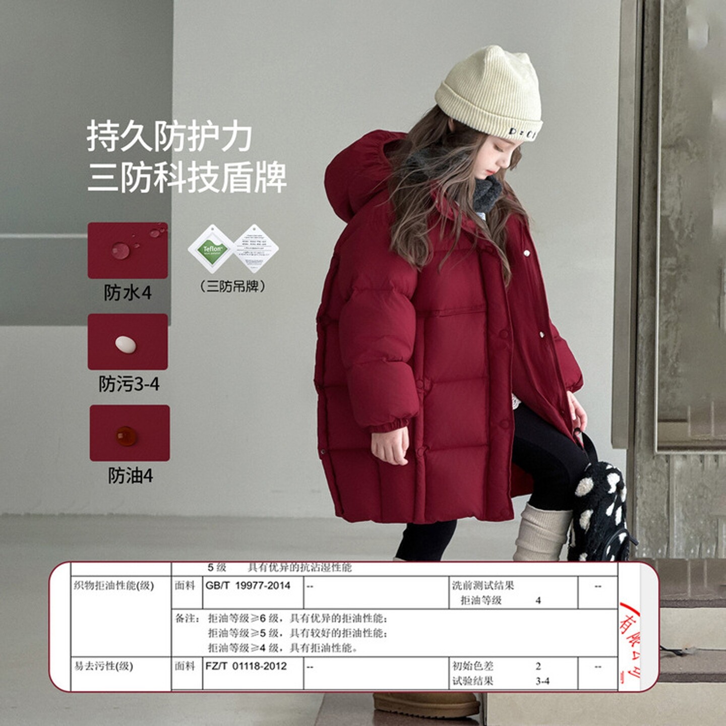 女童中长款羽绒服冬装2025新款儿童加厚保暖90白鸭绒三防女孩外套