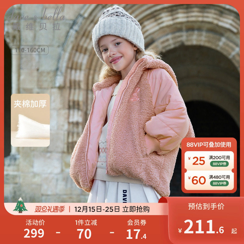 戴维贝拉女童仿羊羔毛棉袄儿童毛绒棉服2025冬装新款女孩外套童装