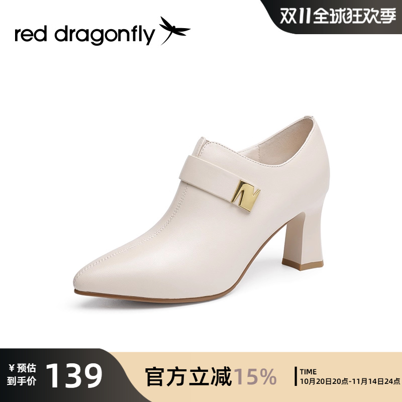 红蜻蜓时尚短靴女秋季新款优雅粗跟尖头女靴深口百搭裸靴靴子舒适