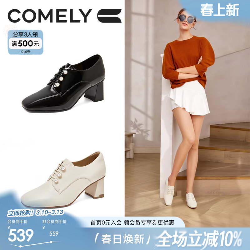 康莉粗跟深口单鞋女2025年秋季新款方头免系带高跟鞋裸靴商场同款