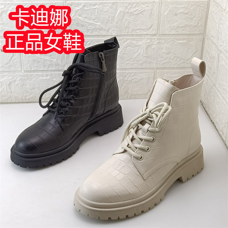 卡迪娜品牌低跟牛皮秋季单里马丁靴日常搭配英伦短靴裸靴皮英伦靴