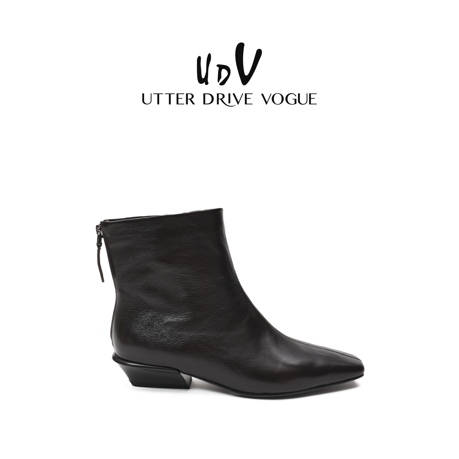 UDV气质女神羊皮时装短靴女2025秋季新款粗跟裸靴韩版优雅瘦瘦靴